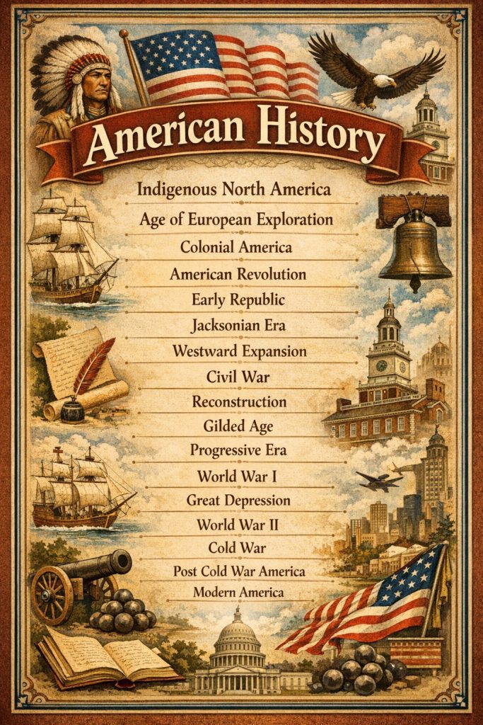 Clear, structured, and historically grounded lessons covering the full scope of American history—from early indigenous civilizations to the modern era.